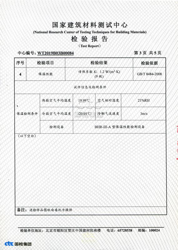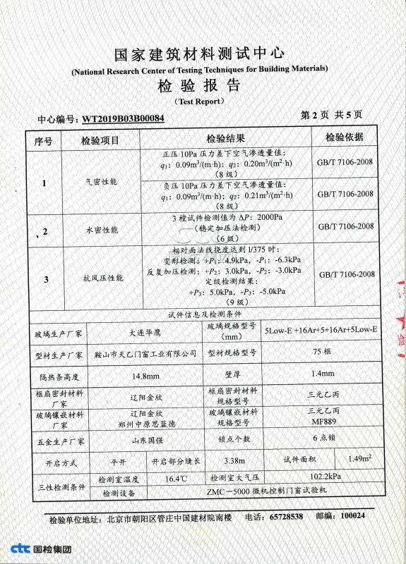 天乙門窗合成木包鋁窗國(guó)家建筑材料測(cè)試中心檢測(cè)報(bào)告